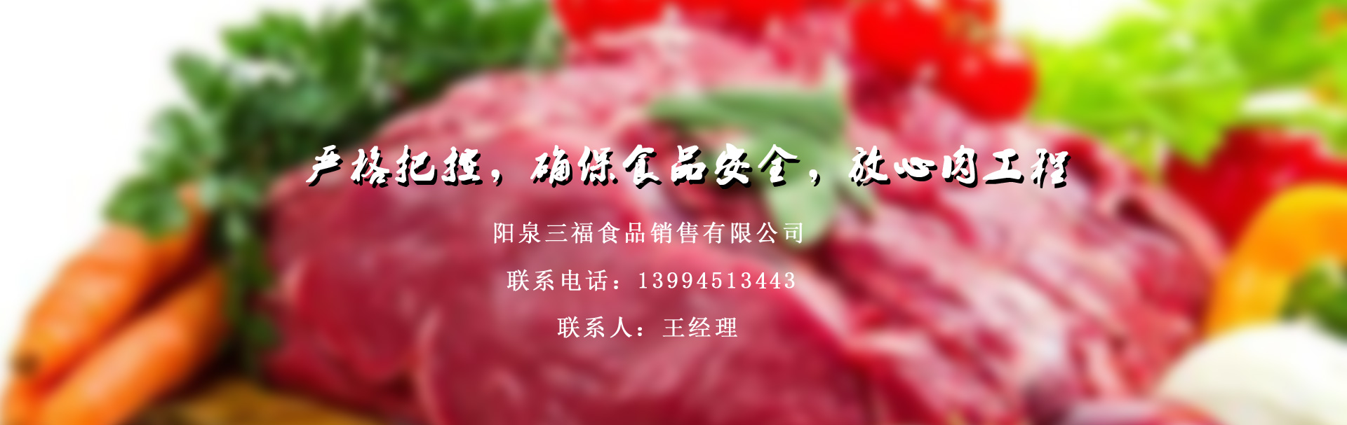 陽泉三福食品銷售有限公司成立于二零零六年九月,位于陽泉市城區桃南中路28號,資質為一般納稅人,是政府批準的合法具有外調肉類的單位之一。在2012年獲得中國人民銀行頒發(fā)的AAA機構信用代碼證。現主要提供以下供貨渠道: 1、 冷鮮肉類的批發(fā) 2、 凍貨...